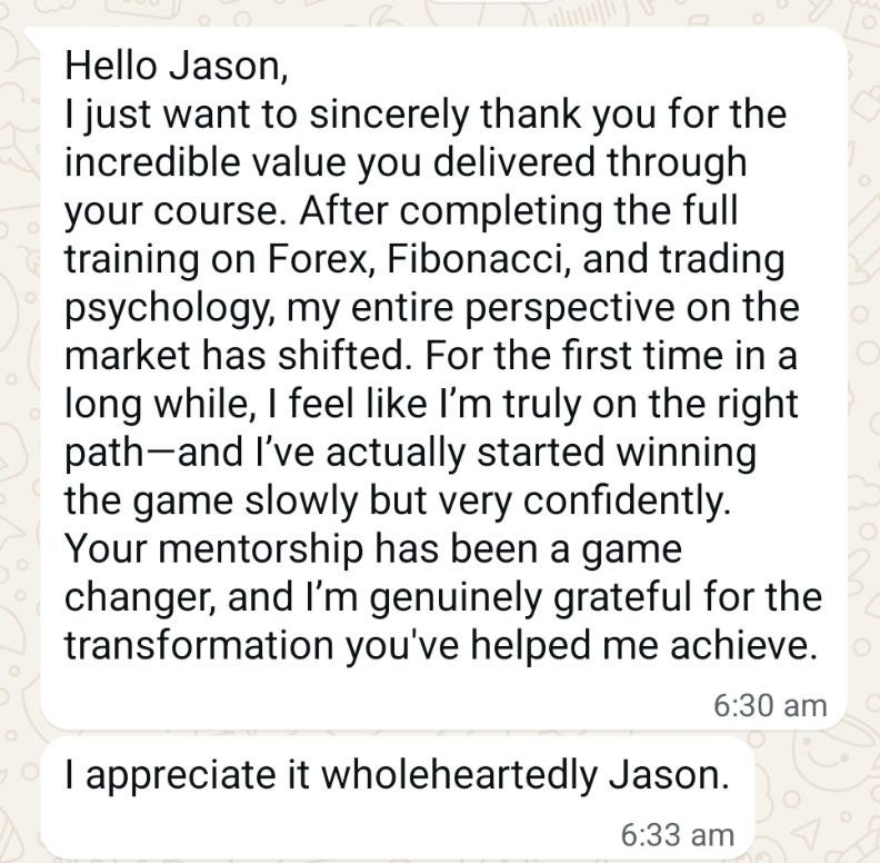 Jason's Solution: One-to-one mentoring calls to teach Technical Analysis and Fibonacci Trading. Jason has a consistent technical analysis approach, with simple techniques developed over a 20-year period, that works across all asset classes and timeframes.